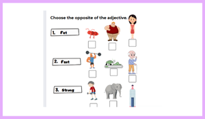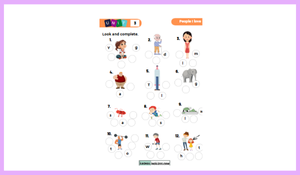 3.Sınıf 3.Ünite People I love içerisinde geçen sıfatlarla ilgili kelime çalışması hazırlanmıştır. Eksik harf bulma ve zıt anlamlı sıfatı bulma etkinlikleriyle toplam arkalı önlü iki sayfadan oluşmaktadır.