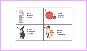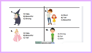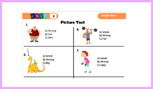 3.Sınıf 3 ünite People I love Teması ile ilgili hazırlanmış olan Picture Test toplamda 10 sorudan oluşmaktadır. Sıfatları görselleriyle eşleştirerek eğlenceli bir test oluşturumluştur.