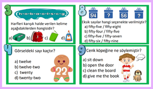 Öğrencilerin seviyesine uygun, eğlenceli ve öğretici sorular içermektedir.