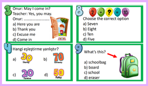 Öğrencilerin "classroom language", "numbers", "school objects" gibi temel kavramları pekiştirmesini sağlar.