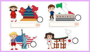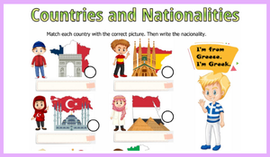 Bu çalışma dosyası, öğrencilerin ülkeleri ve bu ülkelere ait milliyetleri tanımalarını hedefleyen bir eşleştirme etkinliğidir.