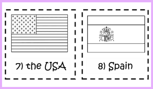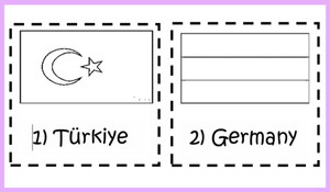 Her ülke için bayrakları boyayıp keserek uygun şekilde eşleştirmeleri beklenir.
