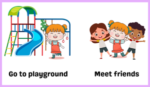 İlk sayfada ünitede bulunan kelime ve kalıpları görsellerle birlikte verdik. İkinci sayfada öğrendikleri bu kelime ve kalıpları görsellerin altlarına yazmalarını istedik.