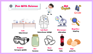 Bu dosya, 4. sınıf İngilizce dersinde "Fun with Science" temasını işleyen, deneyler ve günlük nesnelerle ilgili kavramları öğretmeye yönelik 7 sayfadan oluşan etkinlikler içermektedir.