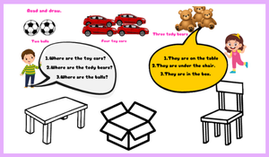 Görsellerle desteklenen etkinliklerde adım adım yönergeleri takip etme, eşleştirme, kelime öğrenme ve konum bildiren ifadeler (in, on, under, near vb.) gibi konular ele alınır.