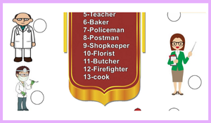 Bu dosyamızda 4. Sınıf İngilizce 7. Ünite Jobs için hazırladığımız eşleştirme etkinliğinde öğrencilerimiz verilen görsellerle mesleklerin yazılışını eşleştirecekler.