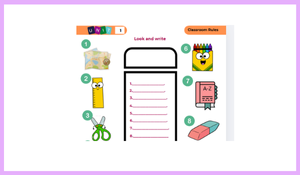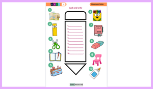 4.sınıf 1.Ünite Classroom Objects temalı çalışma kağıdımız görsle bakarak yazma becerileri geliştirmeye hedeflemiştir. Kelimeleri tekrar ederek eğlenceli bir worksheet hazırlanmıştır.