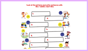 4.sınıf 4.Ünite Free Time Like / Dislike konu anlatımı alıştırmalardan oluşan bu dosyamız toplam 2 sayfadır. İlk sayfada konu anlatımı örneklerle verilip ikinci sayfada yazma etkinliği hazırlanmıştır. Grammer konusunu tekrar etmeniz için harika bir dosya.