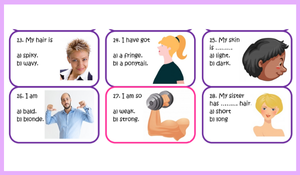 İçeriğinde öğrencilerin fiziksel özellikleri tanımlama, kişisel sıfatları tanıma ve resimlere göre uygun seçeneği belirleme becerilerini geliştirecek çoktan seçmeli sorular yer almaktadır.